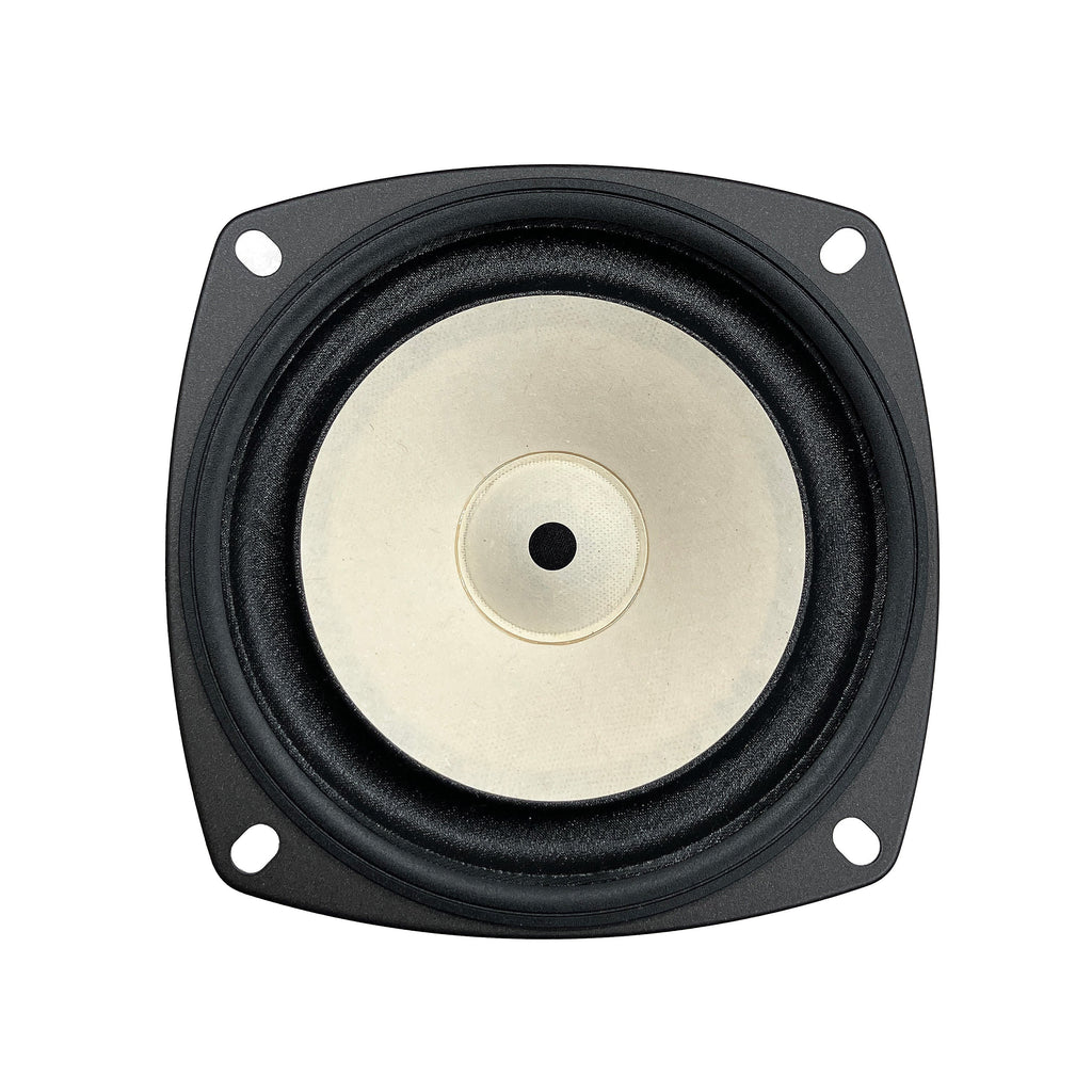 This two-layer cone paper utilizes ES cone pulp, characterized by fine, supple fibres and high density. This achieves enhanced rigidity and internal damping while maintaining light weight. The base layer primarily uses long-fibre pulp, achieving high rigidity through a high-bulk structure while maintaining internal damping. The surface layer employs short-fibre pulp, increasing the propagation speed across the diaphragm surface. This delivers bright, punchy mid-range reproduction, crisp, speedy highs, and rich, deep bass.